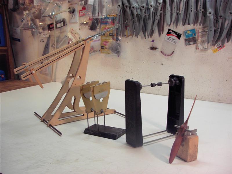 In the Picture second from the left is a wheel type that I have no clue as to its origin since it came with a 'buy out' and the one that I use the most when I choose to balance a prop since its quick and easy on a shelf. Anyone know what it is?