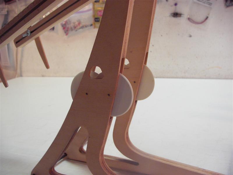 That second from the left is the Robart. You're talking about the gold anodized one, right? It should say Robart on the base but looks like it's been sanded off. The wheels are on I think 1/32" wire axles.