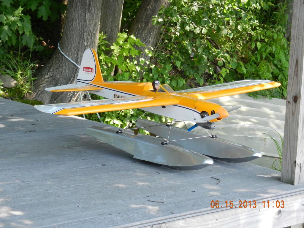 http://www.horizonhobby.com/products...40-arf-HAN4000 Flat bottom wings have lots of lift and you will be OK with those floats.