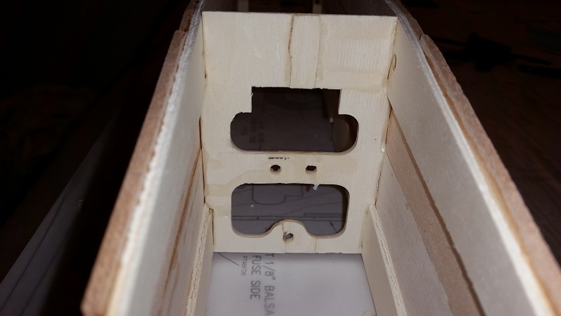 Well, I did my first major screw up today. When I was gluing the fuse sides together I put too much pressure on it and broke F2 and F3 formers. Luckily they didn't break all the way and I was able to glue them back together. I test fitted some of the other fuse parts and everything fits good and it seems solid. I might have gotten away with it. Right now I have the firewall epoxied in and curing. Here are the pics of my ugly fix. Ugly but hey, it works.