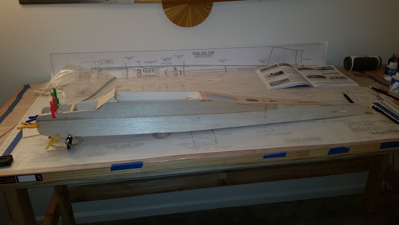 Things have been moving along much faster than I thought. Most everything has been going together well. When I glued the fuse bottom on I glued the masking tape to the fuse. PITA but I got it sanded off. Probably should have used medium CA instead of thin. Then the wing bolt plate and former F3 had a gap in it that I filled with a shaved down piece of balsa. Other than that I have some small gaps but I guess that is to be expected. I will probably fill them with the filler I use for the control tubes. Now I need to get an engine. I want to go OS but am not sure if I should get the .46LA or spend the extra money and get the .46AX. Since this is my first plane I'm kinda leaning towards the LA to save money.