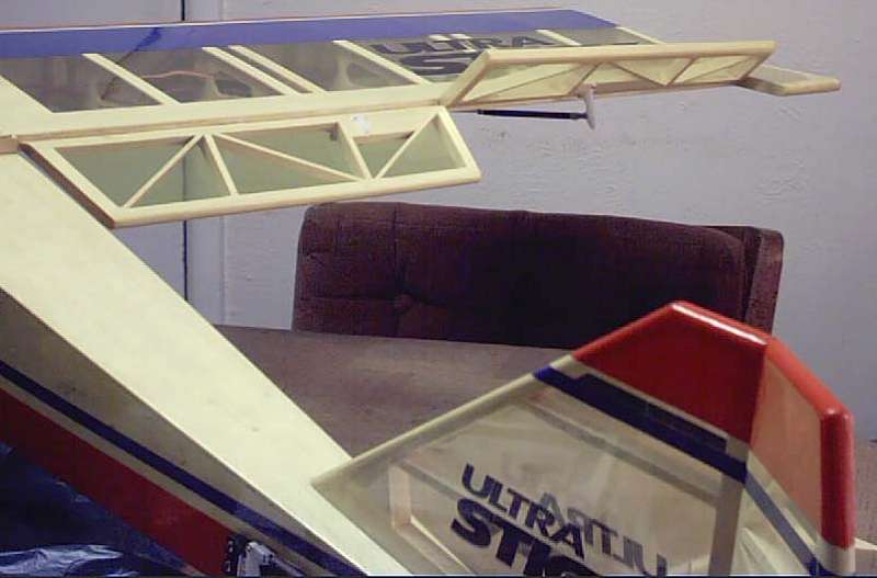 The crow uses the same flap setting, but also flips the ailerons up. On my airplane, this also makes the plane pitch up, but slows it dramatically. In the crow mode, the only controls you have are rudder and elevator. This isn't a good picture (lost the other ones when I formatted the wrong HD) because you can't see the flaps, but you can see the ailerons in the crow position. It looks really cool on the ground, but takes some getting used to in the air.[8D]