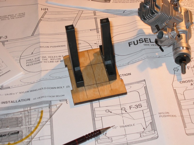 My avistar had a dave brown mount built for a .40,but my engine was a .46 so I bought a dave brown mount for a .46 and the holes for the firewall matched right up.As for the holes in the mount,I took the muffler off and turned the engine upside down on the mount.I drilled one hole then I put a screw in it.Before I drilled the second hole I double checked the alignment,then drilled the second,put a screw in,and so on.The mount fit so good there wasn't much room for it to veer off anyway.The best thing was that the mount only costs three bucks.The reason why I flipped the engine over was so the drill wouldn't get in the way or scratch the engine.
