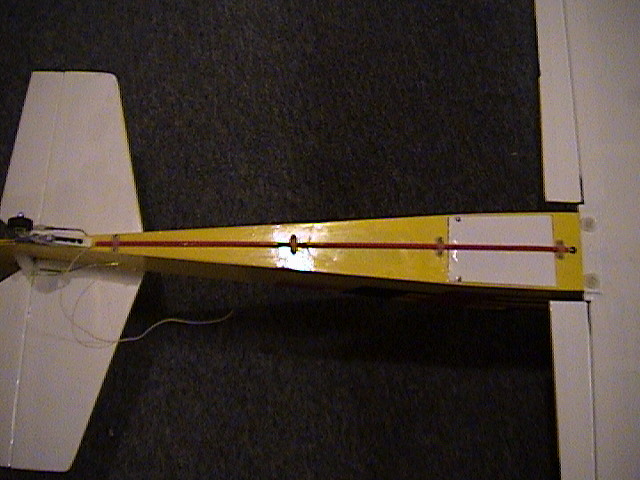 You stated you had to add a ton of lead to the tail; consider what I did with my 4*40 (see attached pics) as a way to balance without additional weight. I installed an access panel in the bottom of the fuse behind the wing and placed my battery amidst wads of foam in the rear of the aircraft. This might necessitate adding additional support struts inside the fuse, but mine worked out great! Battery not heavy enough? Move it further back, or go with a 2000 mah nicad for additonal weight AND flying time! Enjoy!