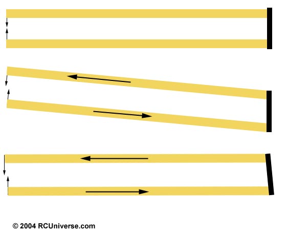 (don't take this too seriously, ok?)If the forces are at an angle, and we all agree that balsa failes more easily along the grain than cross-grain, then any failure in the web should show up at a grain-wise crack. If the web is veritcal, the crack has little effect, since both ends are still glued to the spars. If the web is horizontal, even a small crack disconnects the top and bottom spars