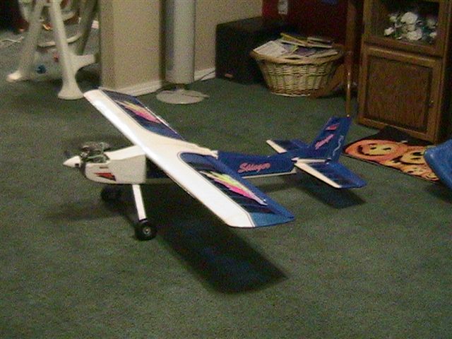 As I said earlier, the plane was a good one. The quality is not so good, but if you treat it well then you will not have any problems with it. Be careful handeling it, the wood is thin. The plane flies awesome. In the air is is as aerobatic as you want it to be. Roll rate is incredible, and so is the climb since it's lightweight. I eventually burned mine in. Destroyed the fuse, but the wing survived. I've since put the wing on my hanger 9 alpha trainer (with some modifications to the wing saddle), and it flies on. In fact, I just flew it yesterday. Here is a picture of the stinger when I first got it. It really is a good looking plane. I might suggest that you get the red one, though. The blue can be hard to see in the air. Also, with the white leading edges, it's easy to lose it on glide slope against a gray sky! I'll post some pics later of the hanger 9 conversion.