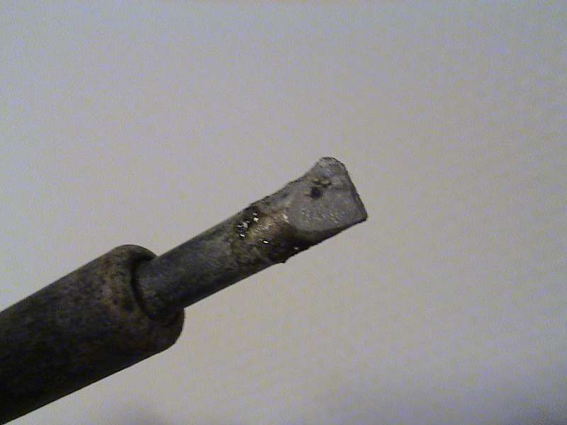Sand it lightly to clean it, then turn it on, and after it's fully up to temp. touch the solder to it. Just enough so it melts on there. You can wipe off the extra with a cotton rag if you get too much on there. Now it's tinned, and will work much better.