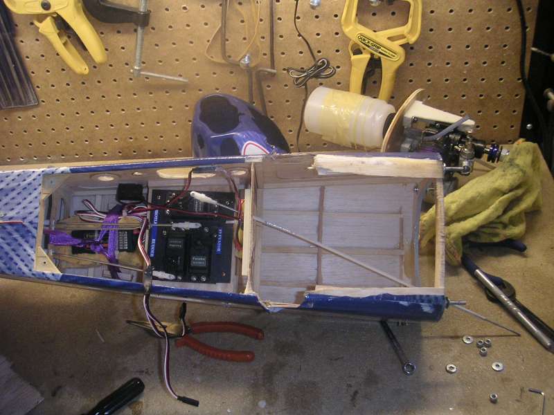 For future reference, I suggest brushing on a thined epoxy mix to the firewall and fuel tank area when assembling the model. It will prevent these areas from getting fuel soaked if a leak should occur.
