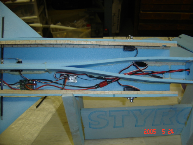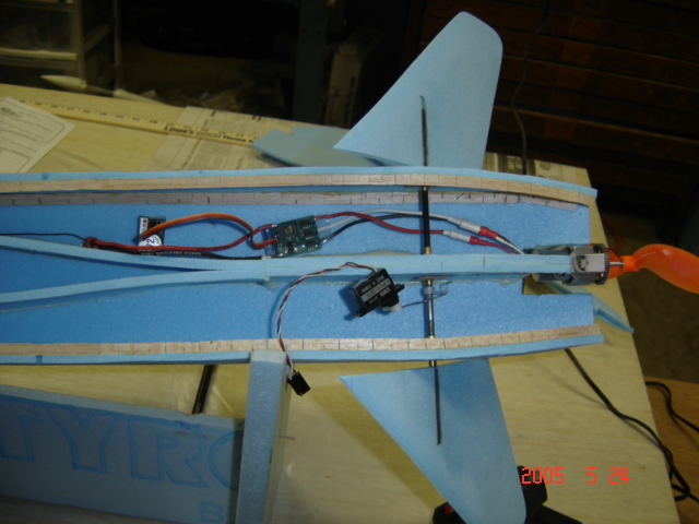 I see you are using the Himax gear train (good choice). Have you considered using the C gearing like I mentioned? I think this will give you the amount of power you are looking for. I locate my battery all the way against the nose with an extension wire going back to the sc and rx. The plane should balance out on the spar at the fuse sides. Can you take a photo from the side?