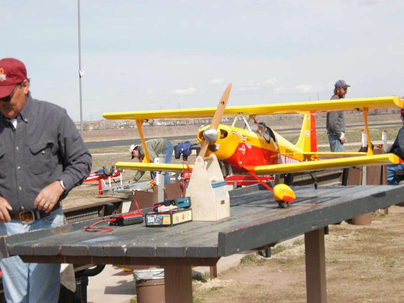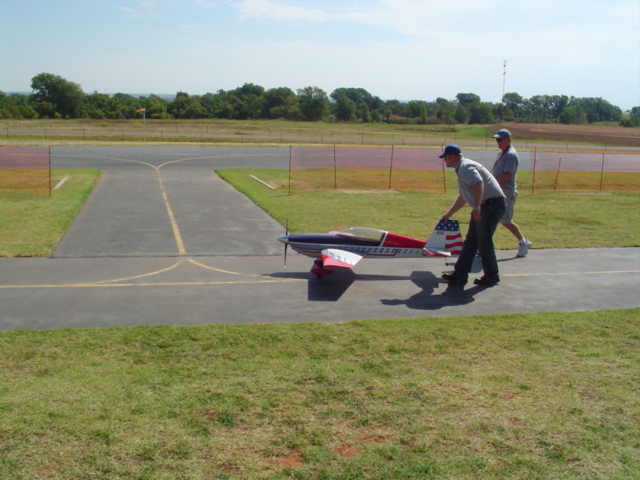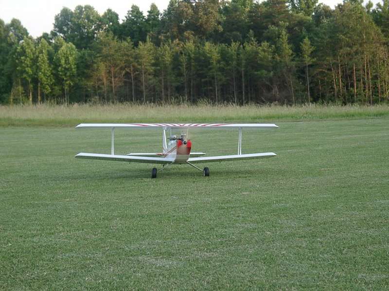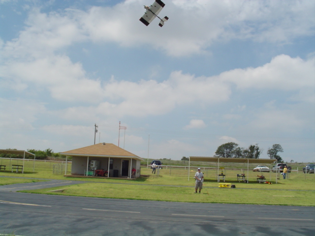 I had to start my field by dragging an 8 foot I - beam behind my bronco. I borrowed a tractor and brush hog from a neighbor and chopped the knock down up. It ended up taking 2 years of rolling with an 800 lb. roller to get it smooth enough to take off and land on. I can appreciate the work that goes into putting even a simple field up. The tree in the above picture with the 2 guys standing with backs to the camera and the Tiger on ground is a Box Alder. It was just a twig that I missed when I was dragging the field. I am kind of glad now that I left it there to keep growing, yesterday it was 94 degrees and humid, but fairly nice in the shade of that little tree. If you have Realflight, you can download the field from their website, the fence at the one end of the runway and the hedgerow at the other end of the runway makes for some interesting landings, especially if you vary the wind. Hence the name "Bingo Field". You have all sorts of space to fly over, but to land, the trees nearby and the obstructions at the ends of the runway can cause some pucker factor when it gets windy.[8D]