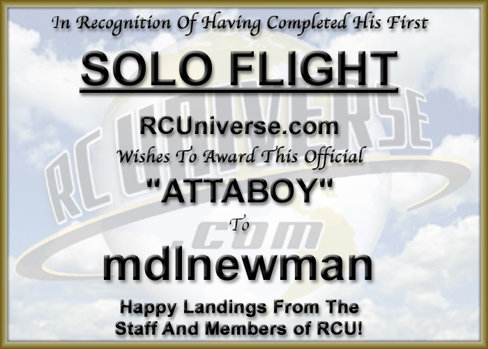 A solo flight is a great accomplishment and that wins you one genuine RCU ATTABOY (Suitable for framing, wrapping fish, or lining trashcans).