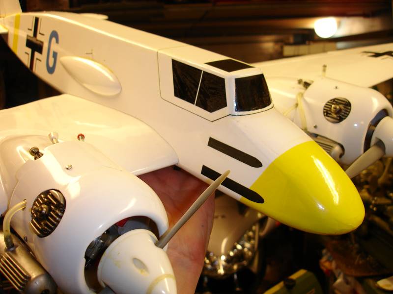 Here is a picture of my Henschel 129A , 1:12 scale (German WW2attack aircraft). Powered by two OS FP .10 engines