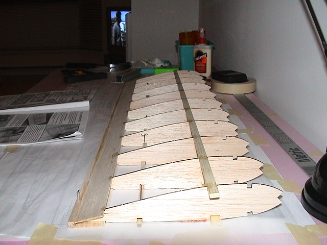 along the spar webs and the ribs. Put the spar in and used something to hold it down. Still have