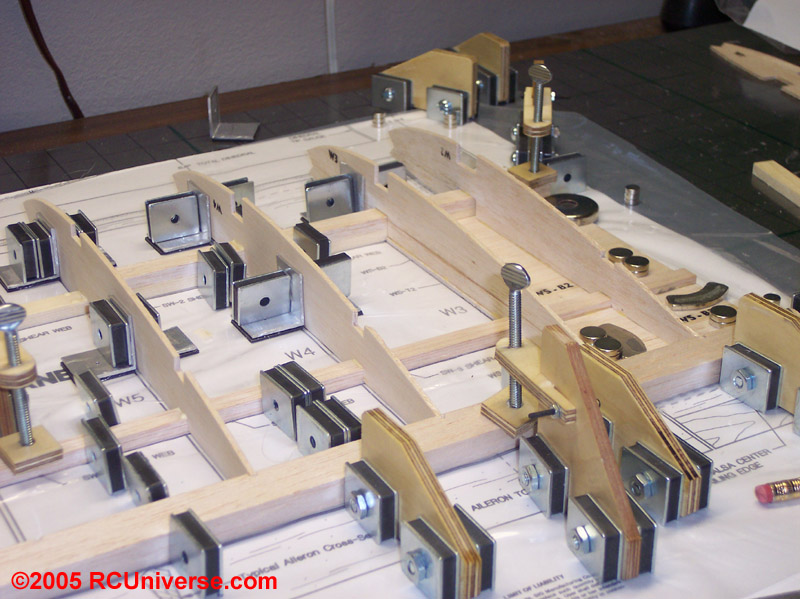 Hey Ken, in the fourth pic you posted above, I see some magnets (being used on the wing ribs) that are sitting on, or attached to what looks small pieces of 90 deg. angled steel. What exactly are those made of, and are the magnets attached, or just being used to secure them?