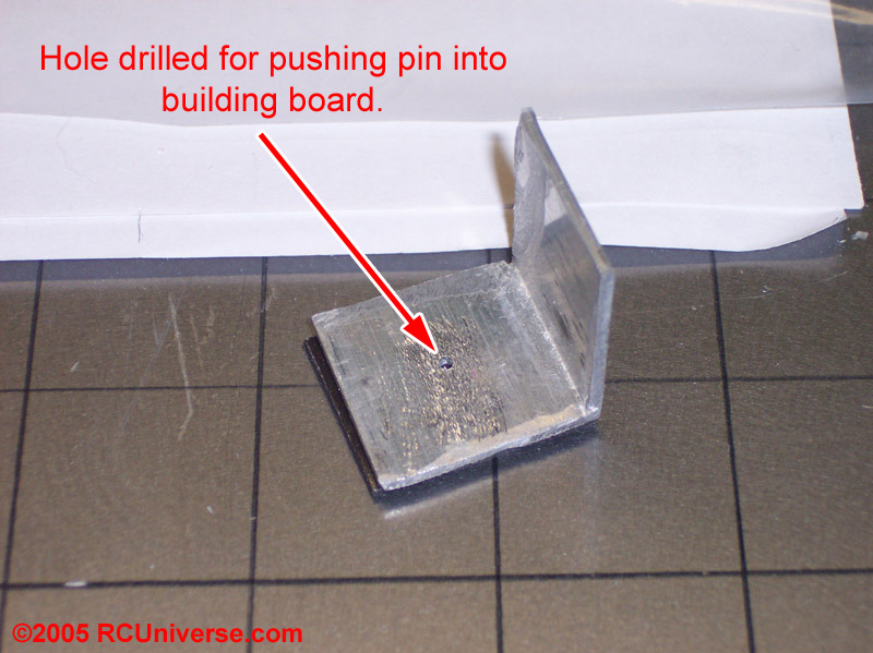 Those are actually a building aid that I made for when I was still using pins to build with. I took a piece of 1" extruded aluminum that I picked up at Lowe's. I cut them into 1" pieces for this use. For using pins I drilled a hole on one side of the bracket to pin it down with. When I converted to magnets I put some adhesive magnetic strips on the bottom of the bracket but it doesn't have enough "grab" to stay in place. So I use 2 magnets on each bracket to hold them down for this build. Once important thing is that after you cut the 1" pieces it's a good idea to check each bracket with a square to ensure that it's still at 90°. The biggest place I use these is for holding ribs in place while building the wing. Take a look at these pictures and let me know if you have any questions.