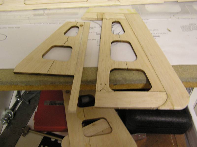 ) the firewall is the next step so I need the engine. Also need to get thick CA to glue in the blind nuts. Is it better to use this than epoxy? I also need to pick up a Sullivan tailwheel. I am thinking I will add triangle stock to the rudder and elevator but I just realized that then the LE will be to short so I will have to glue another piece to the LE to lengthen it, oh well they are already too short. The right side of the elevator and one fuse doubler (the one with the paint and fuel on it) are drying right now.