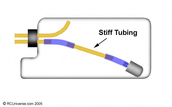 # 2 is more correct since the clunk tube will bend enough to pick up fuel unless the tank is lower than 1/2. I never use the stiff clunk tubing that comes with the tank kit; instead, I use small or medium fuel line.