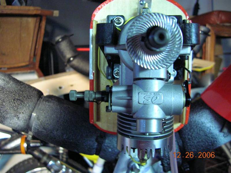 I've gotten heat in the past for speaking my mind on this. However, I feel there is no benefit in mounting a two stroke engine inverted, other then to get a lower needle valve to fuel tank level, where this is really necessary. To the contrary, it can and generally does make the engine difficult. Most of the really knowledgable engine people agree on this. Clarence Lee in particular feels it is only asking for flame outs and difficult running. Side mounting the engine is not difficult to do and makes for a reliable engine. All that is needed is re-drilling the mounting holes and filling in the old ones, not a difficult task.