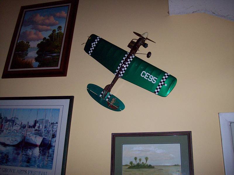 Here's one that I'm going to cut off just behind the canopy and mount "flying into the wall" in my 2 story livingroom. I already have an antique control line plane anchored to the wall as "art". Plus the 20/10 Zinger prop over the door going out to my 1 car "hanger".