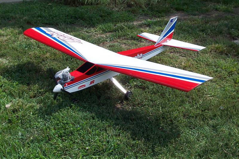 Had a decent day to fly, so out to the field it went. I had previously removed the pins on the high and low speed needle valves to make it easier to properly set up the engine. After fueling it started right up. I ran one tank through to break in the engine, then set the high and low end for flight on the second run (hand started on the first flip too). As I taxied the Alpha out and started down the runway and started to turn around the wind caught it and over on its back it went - guess it doesn't like 15 mph tail winds very well. I fired it up again and this time the winds where down a bit - around 12 mph but had shifted to almost a 90 deg crosswind. We've had some rain so the field had not been cut, and this plane has only 3" wheels so I went way down the field. I decided to fly it with the 3-blade prop that comes with the plane just to see how it does before changing to a 2-blade. It took about 100' to get airborne thanks to the long grass (I wasn't the only one with long take-of runs today) and started into a nice gentle climb. The flight went well with some aerobatics thrown in for fun after I had it flying straight and level with most of it at 1/2 throttle. I found I do need to add a bit of tail weight and increase the elevator throw to max as I ran out of elevator on landing, and in-flight trim tests showed it was still nose heavy.
