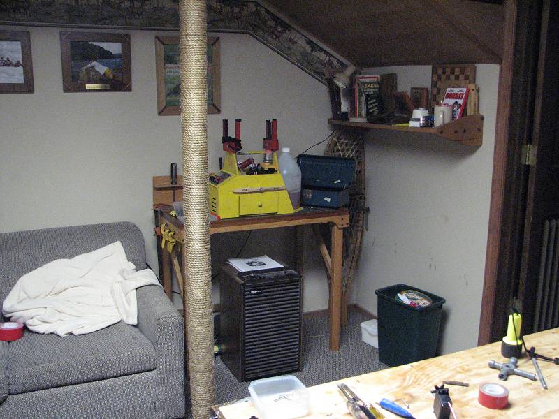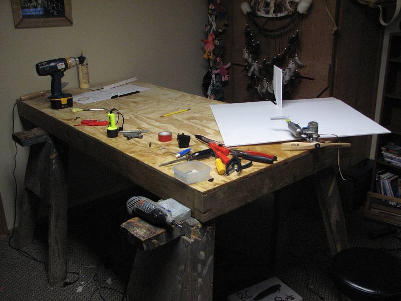 Ok heres my work area, if you think this is messy you should see it when i'm building a balsa plane. Don't worry i used to have a nice clean work bench too, the mess builds over time!