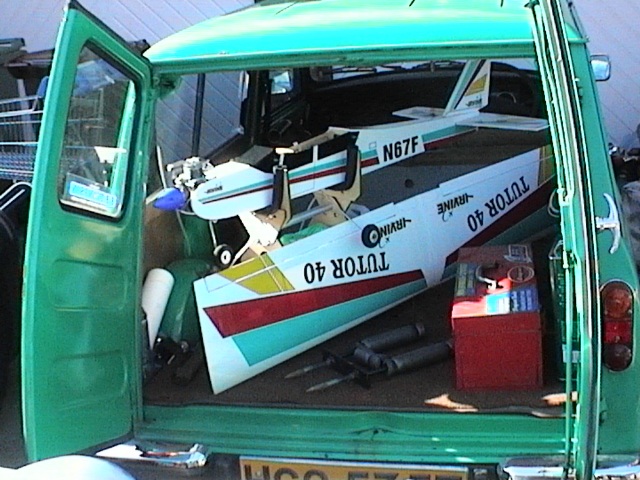 my 'moto is only small, so i take the wings off and put them behind the passengers seat and lean the other end up against the back seat headrest. then i put the fuselage into the boot sideways and put my toolbox, fuel and TX around it to help keep it still whilst in transit, i can even get 2 or maybe 3 planes in the little Vauxhall Astra Estate (my moto, my Dads flair cub, and the Kadet)