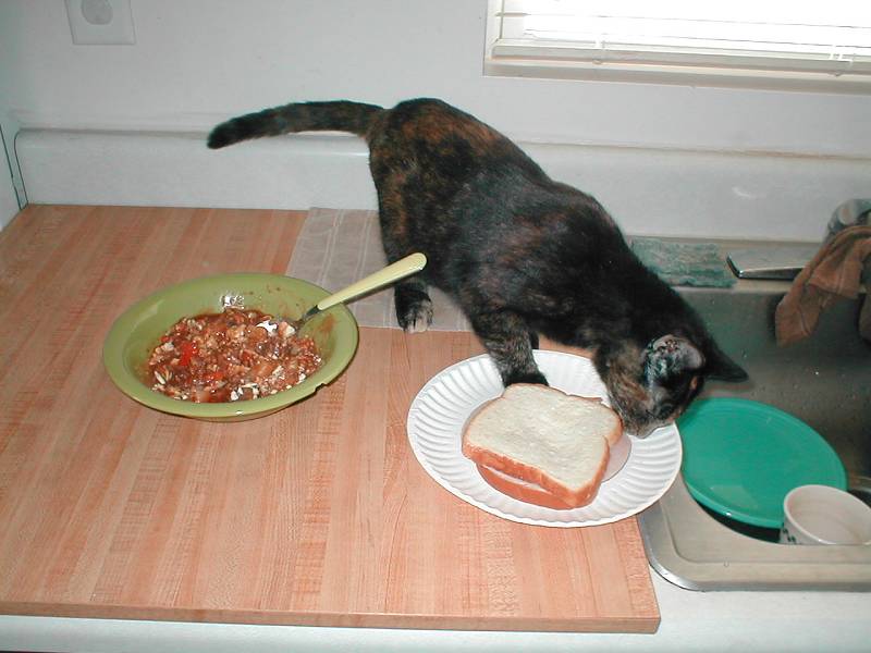 actually he's trying to get me off the computer so i'll fix him another bologna sandwich! and another bowl of whatever that is in it!
