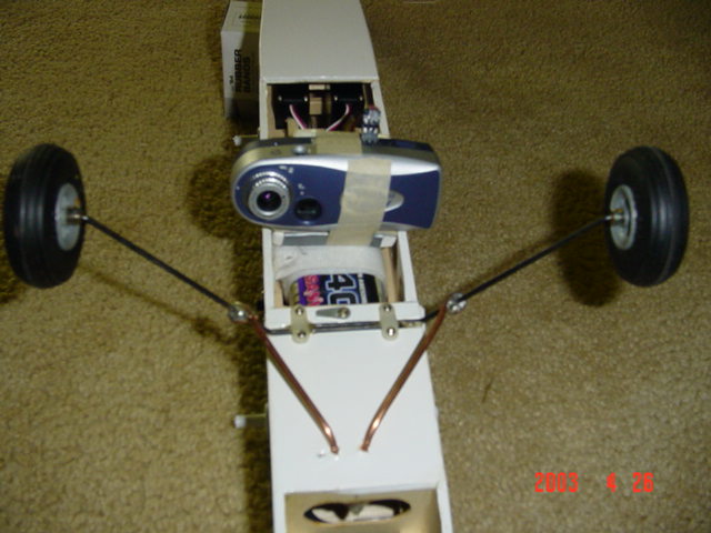 I landed the rc with a 15mph cross wind and was thinking of real flying. I also put a Aptek digital camera on board. Center of gravity and camera angle is still being fine tuned. Then I'll extend elevator controls for more stall potential to slow the rc on landing"flair". The grass is tall in my neighborhood field. So the landing gear flexes and bends out, plane stops in five feet.