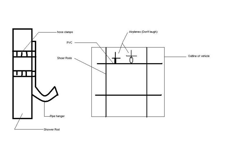 Finally, place the PVC in the pipe hangers, running side to side (horizontally in the vehicle, in other words). Have one in the rear, another up front, and others in the middle if needed, depending on plane size/weight.