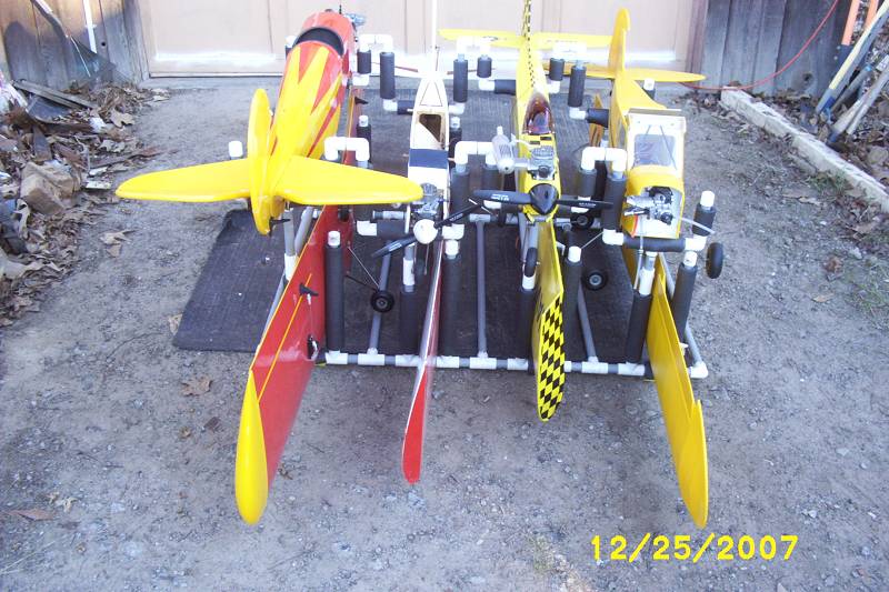 thank you for all your thoughts and advice I believe that stand will work well.also the trade name for the thicker pvc is (schedule 80).I only have one plane and will probably design it as such with a carrying handle because i can store it in that rack in my (apartment).