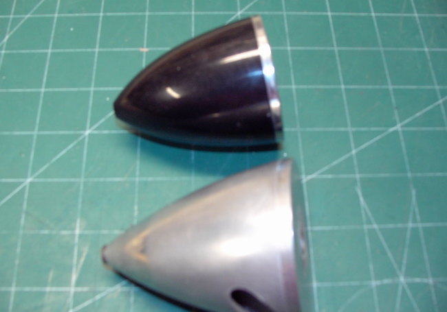 To illustrate that all important capture ring especially for a four stroke enginee I think you can see it in these photos. A machined or moulded grove around the perimeter of the backplate with a machined or moulded ridge that fits it in the spinner cone. This releves the centrifical loads from cone making this type much safer for four stroke use. The bottom pic is a typical quality alum spinner and the top is a CB plastic which along with the the Great Plains type that Campgems linked above are the only two plastics I am aware of with a alum backplate and a capture ring.