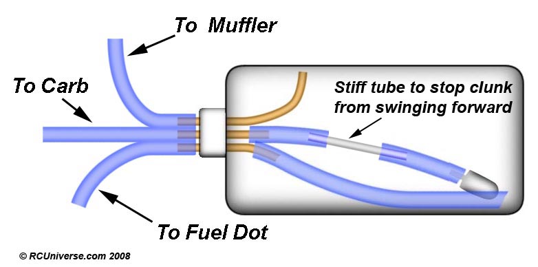 The fuel line inside the tank in a straight metal tube with the silicone tube on it as well as the clunk. Its on the bottom.