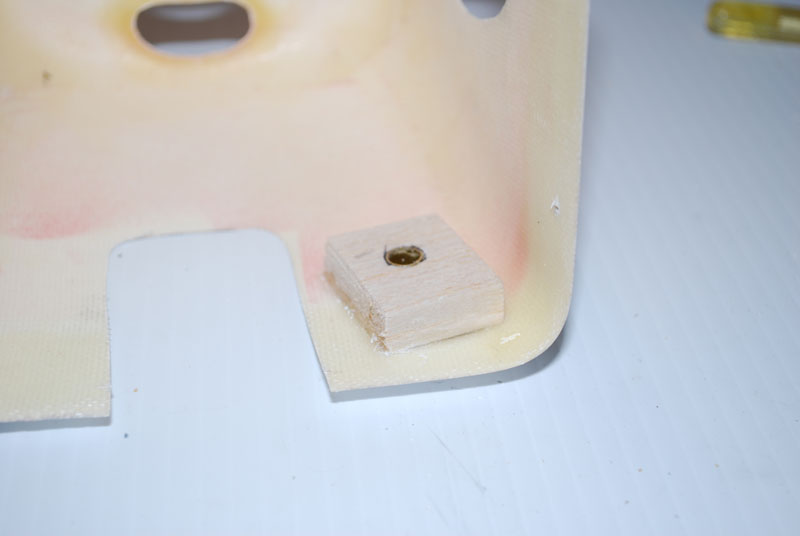 Ok, what I did for the fuel line is simply make a receptical for the fuel dot to mount in. It's not really a fuel dot, but rather more of a fuel stopper. But it works just like a fuel dot if you build a small receptical for it that mounts in the cowl. These are pretty easy to build. First start with a small block of balsa. I don't remember the size of brass tubing you will need right off the top of my head, but 1/4" tubing seems to stick in my mind. First shape the bottom of the balsa block so that is fits the inside of the cowl. The block only needs to be approxmately 1"x1"x1/4". After it's shaped to fit the inside of the cowl drill a hole through it for the brass tubing. Now size the brass tubing so that it extends 1/16" below the bottom of your balsa block, and cut the top of it flush with the top of the block. Use thin CA to secure the tubing in the balsa. Now drill a hole in the cowl where you want the filler tube to mount. the 1/16" extending below the block should sit flush with the bottom of the cowl when the block is in place. Use epoxy to glue the block in place in the cow. Once the epoxy is dried slide the fuel filler tube through the brass tubing and then push the stopper into the fuel tube. You can then push this back into the tubing and it will secure in place. This can be seen in the pictures in my review, [link]http://www.rcuniverse.com/magazine/article_display.cfm?article_id=1039[/link] . Here is a picture of the block on the inside of the cowl.