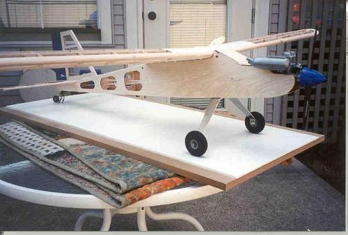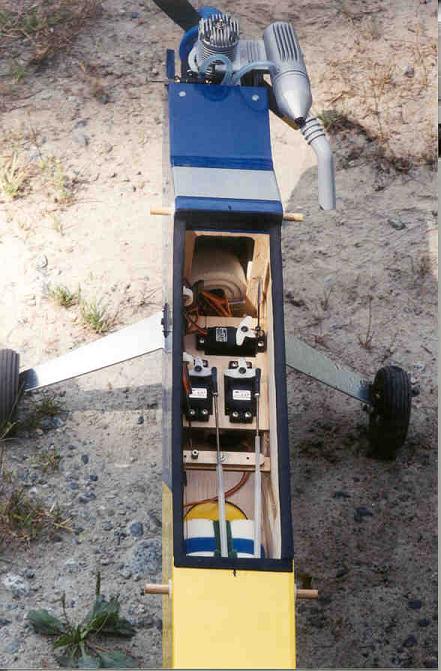 Possibly the most difficult thing for the first time builder is the application of the covering. I chose to use Ultracoat and after some trial and error was able to produce a two colour finish that I can be proud of... This covering has stood the test of time, with little or no sagging, able to take some less that perfect takeoff and landing abuses plus the inevitable hanger rash.