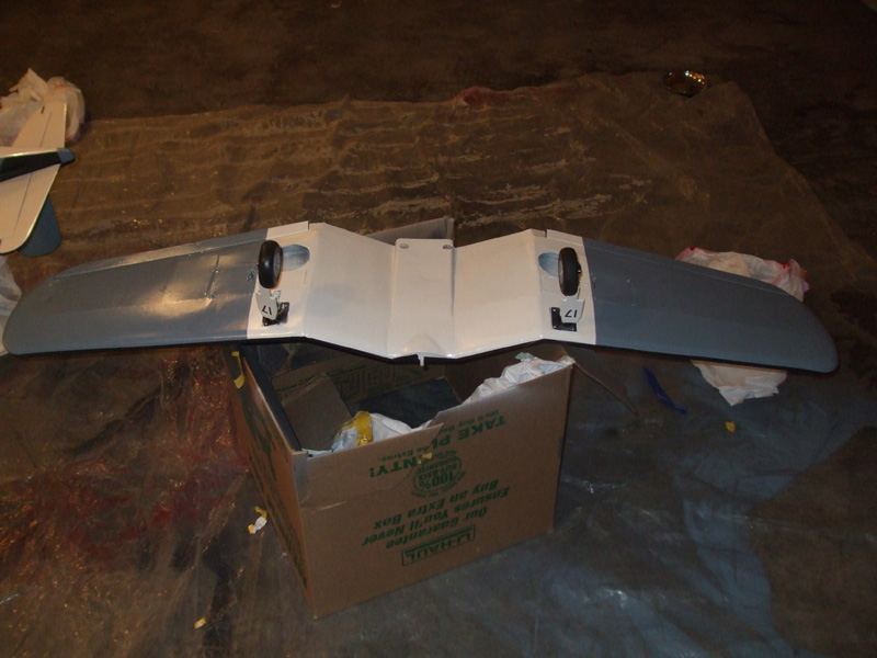 Well I bought an HVLP spray gun from Harbor Freight for $15 and it looks like money well spent! Got a buddy at an autobody shop score me a couple of 3M respirators and I set set up a paint booth in my garage (w/ proper ventilation of course) An artist friend came over and brought his compressor. I tac clothed the airplane and he set up the gun and mixed the paint, thinner and hardener. We tested the spary pattern on a box and then sprayed the plane. All I can say is WOW! This was pretty easy and a ton of fun! We shot the dark blue first becaue I am going with the tri-color mid WWII scheme and want to fade the colors together. So far here is what we have! Unfortunately he is unavailable to paint this week soI'm on hold. Enjoy!