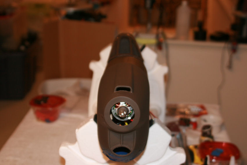 Used a cheapo airbrush powered by an air can. Took a few minutes & provided a great flat finish that is a excellent match to the flat skin of the plane. Cut the paint 75% paint 25% water for spraying.