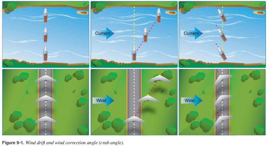 A useful way of getting this is to think of a hot-air balloon in a steady wind. The balloon will go where the wind goes, but the wind is not blowing against the side of the balloon: the people in the balloon will feel no wind at all. If you were to hand launch an RC plane from the balloon and fly it, you would feel exactly like you would feel flying on the ground in a dead calm. People in open-cockpit planes flying in steady crosswinds don't feel a breeze from the side. If they did, the air would have to be moving toward the plane faster than it was carrying the plane sideways, and, unless the wind speed changes, that would be impossible. Similarly, the yaw string on a glider points straight up in coordinated flight in a steady wind, no matter which way the wind is blowing. A steady wind doesn't blow against a plane in the air, the wind is a mass of air in which the plane is flying. When that mass moves, the plane goes with it. On the ground, it's an entirely different matter. Taxi straight down the runway in a strong crosswind and the wind striking the plane's tail will tend to make it turn toward the wind. That's because the friction between the wheels and the ground keeps the whole plane from moving sideways in the wind. |
