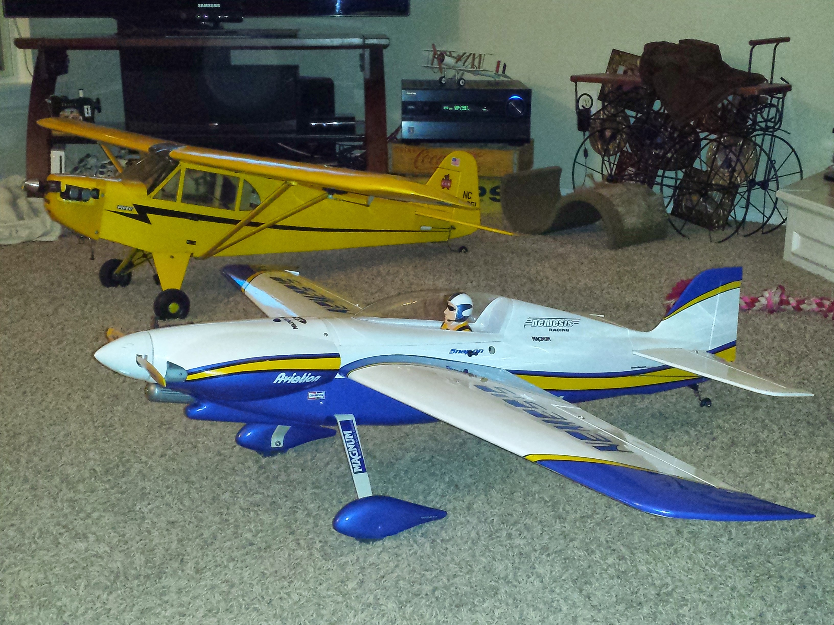I am not sure you can call me a "beginner" as I have about 13 years of flying but have not flown in 12 years. I have had the itch to get back into the hobby for several years now and have finally convinced the female powers that be that "it wont be that expensive" :cool: I purchased a 40 size Seagull Nemesis back in November that is Magnum .46 powered. I figured I can fly the sims well and seem to still have the muscle memory so why start with a trainer??? Hopefully this does not prove to be an expensive judgement error. I then walked into the LHS the other day and picked up a very nice J3 Cub off consignment. It is Saito .72 powered and one of the 80 inch fabric covered Great Planes models. Someone did a lot of extra work with extra scale accents. I have decided to fly it first even though I will be more upset if I careen it into the ground than I will be the Nemesis. But, obviously, given the slow and easy offerings of a Cub combined in feeling like my first flight in 12 years probably shouldn't also be a MAIDEN. Sunday is supposed to be 8-10 straight down runway and mid 50's.....So join me in prayer to the RC Gods that my fingers and brain are all on the same page after all these years!
