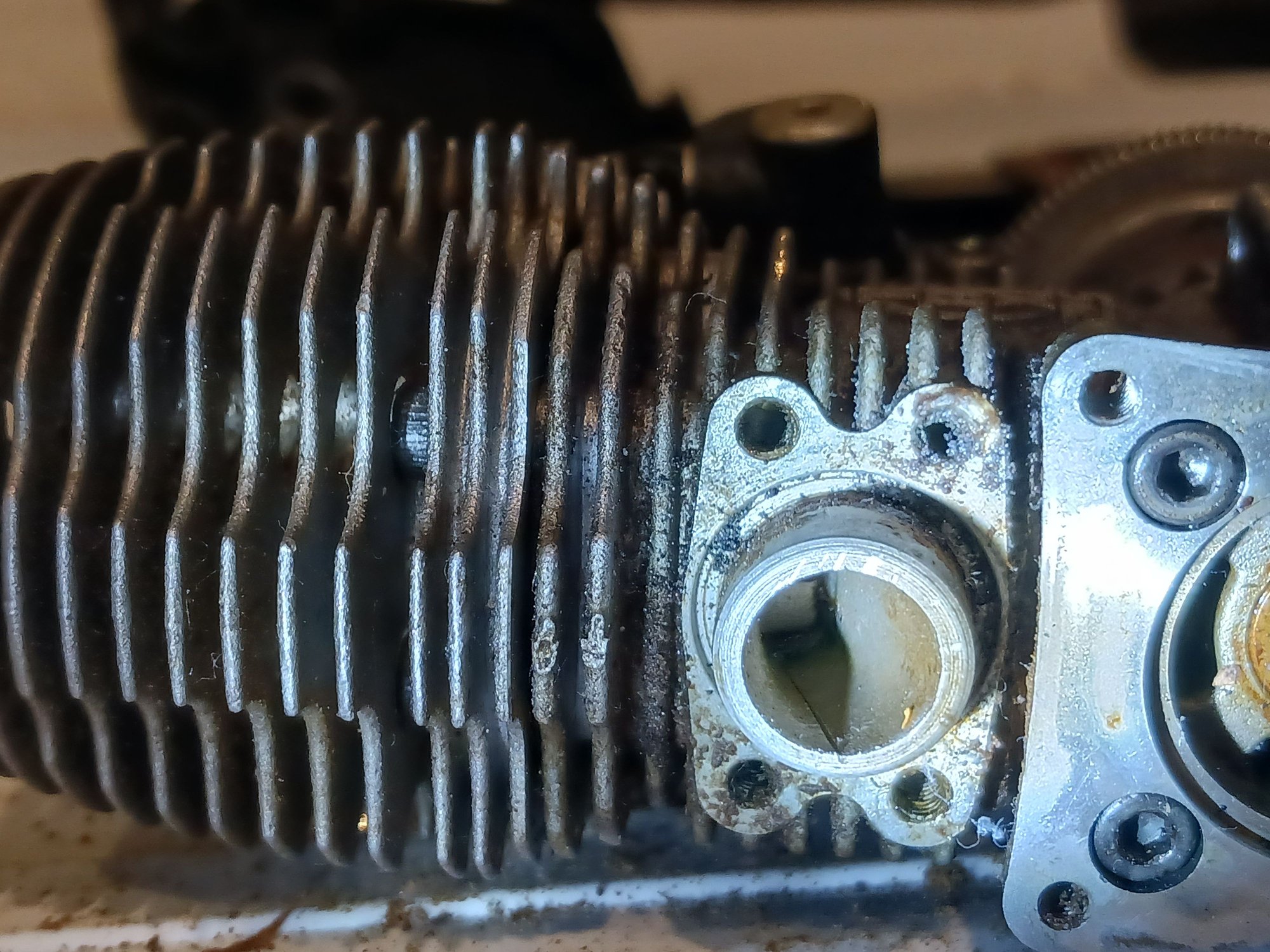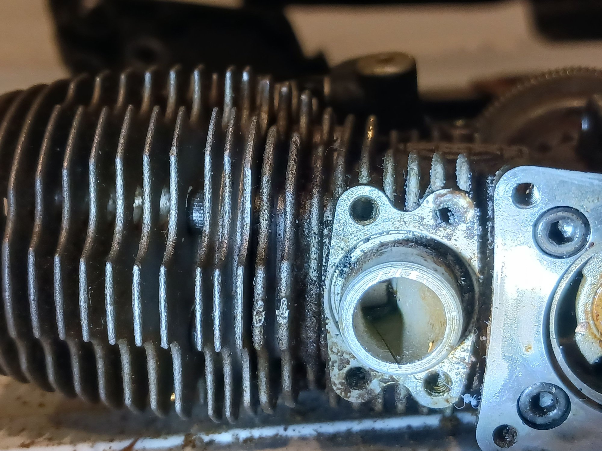 I cleaned the outside of the engine this afternoon and saw a scratch unless this is another crack. I looked at the anomaly further on the way home, & it starts at the top then goes down to where the backing plate would be. I have looked into a Traxxas parts car on ebay which includes an engine also.