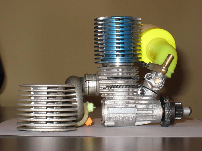 Recently I purchased an AXE Rossi Engine from a fellow racer. I was told it was a 195R12. I have tried to research this engine without success. I have already gone to the AXE Rossi website. I believe they are only going to show their new line of engines online. I have tried to email them but have yet to receive a responding email. I wanted to purchase a rebuild kit incase it was needed in the future. I am including three pictures to help identify the engine. On the side of the engine it reads “ADE IN ITALY”. On the face of the carburetor it reads "Rossi". The original head is pictured beside the engine. I was told it was a 3-port engine with a turbo plug. I would also like to purchase more plugs for the future. Please help me in identifying this engine so that I may purchase the proper parts for it.