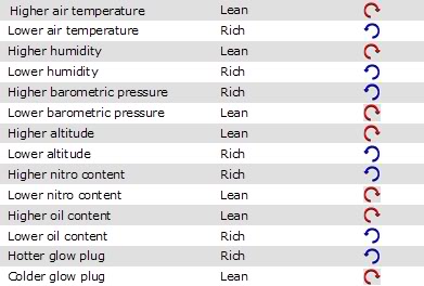 Why do we ‘tune’ our engines? How is it done? This guide assumes that you are familiar with all of the parts of your R/C's engine. If you are unsure what a Low Speed Needle (LSN), High Speed Needle (HSN), idle screw etc are, please refer to the manual (RTFM). Tuning a nitro/methane 2 stroke engine literally means adjusting the air/fuel mixture inside the chamber. This is done by means of adjusting the amount of fuel that is allowed to flow into the carburetor via needles which can be opened and closed. Most of us know that there are a wide variety of factors that affect that air/fuel mixture in the chamber other than just adjusting the needles. Because of this an engine may have to be tuned several times in the same day for optimum performance. Not maintaining an optimum air/fuel ratio can result in poor performance, or even engine failure! There is a point, in every engine, at which air/fuel mixture will allow the engine to obtain its maximum HP and RPM’s. Tuning your engine to that point can be dangerous, as the mixture is somewhat lacking in the lubricants necessary to give maximum protection to the engine. Therefore, most people will want to run slightly rich (more fuel in the mixture) of that point. This is referred to as the ‘Sweet Spot.’ Some racers will run at pure max potential, but they also don’t usually care if the engine only lasts a gallon… Running at those settings can be very dangerous because being too lean is just a very slight adjustment away. And running lean is the real engine killer, not temperature. With proper lubrication, the internal components of an R/C engine can easily withstand temperatures of 300F, maybe even more. The thing is, these engines are designed to operate at temperatures around 210 – 270 F. While there is the possibility you will encounter an engine and conditions that dictate the temperature at proper tune is over 300, it will be a rare occurrence. What that boils down to is that there is a good possibility that there is a problem if your engine reaches too high of a temperature. That is why it’s a good idea to monitor the engine temperature, but not use it as a guide for adjusting the air/fuel mixture in the engine. So, how do you get to that ‘Sweet Spot?’ 1) Start out with rich settings. If you are unsure how to go about this, an easy way is to start with stock needle settings. This includes the idle screw - make sure it is set at factory settings, usually a 1 or 2 mm opening for the idle stop. The factories always set engines rich for break ins. 2) next, warm up the engine. Try not to hammer the throttle too much while its still bone cold, but slowly work your way up to a couple WOT runs. 3) Now that the engine is warmed up (1/2 tank is good), do a couple WOT runs of about 50-100ft in front of you and pay attention to the pitch of your engine. The higher the pitch, the more RPM's its doing. 4) Now lean out the HSN by 1 hour increments (30 degrees, 1/12 of a full circle etc) and continue to do some WOT runs in front of you. The engine's max RPM's should continue to go up each and every time you lean out the HSN by those 1 hour changes. If it doesn't, you have reached the top end and need to richen by an hour. Make sure that you do not continue to lean out the HSN after max RPM's have been reached. You will damage the engine. Congratulations, you just found the sweet spot. Now, if you notice that the car/truck bogs a bit at take off, lean out the LSN (again 1 hr increments) until it will take off at the touch of the trigger. And you're done. At this point I like to temp the engine to get a baseline reading for the day. This is a simple and fool proof method of tuning that everyone can do. Regardless of your experience. |