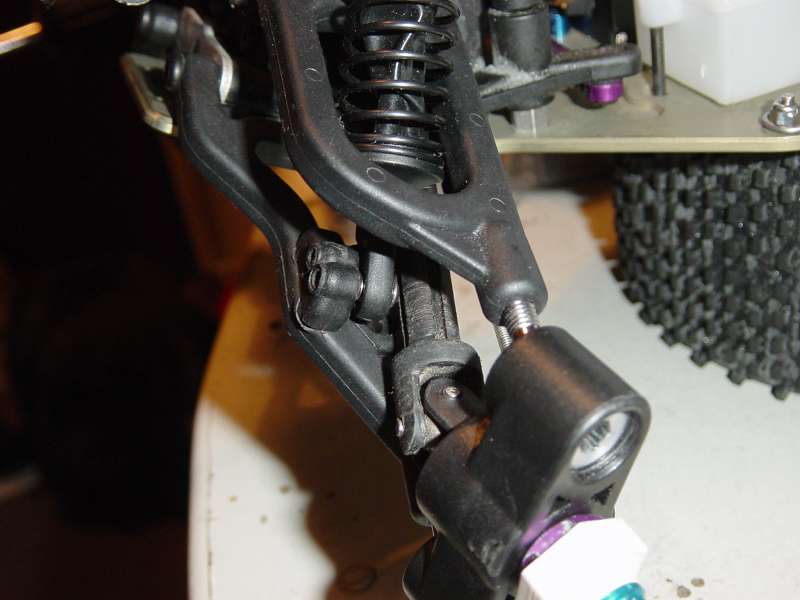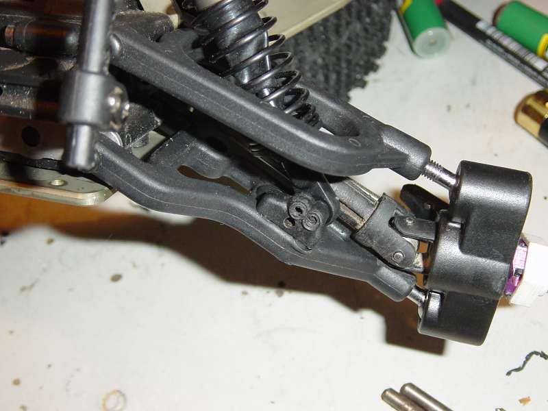 Check this out, it may help you. Place your chassis on a flat surface and push down on the chassis while checking the end play in the axle shaft. If at any point in the suspension travel the end play is gone, adjust the width of the front, or rear, track until there is some clearance. Since I have adjusted mine, I haven't broken any cups or shafts. When that truck hits the ground and the shafts bottom out, something has to give. If you modify the cups, then the shaft fails or the pivot balls are forced out of the control arms. On the other hand, the shocks and springs must do their job and absorb the energy of the drop. . . .