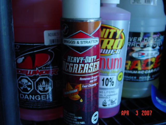For cleaning out diffs, I personally like to use mineral spirits. You can get this at any home depot or hardware store. The reason I like using mineral spirits over carb cleaner is the exact reason that Blitz had mentioned earlier, some carb cleaners are so strong that they may eat the plastics. The routine I have for the diffs is like this, I clean out one diff at a time, this way I don't have to worry about resetting the gear mesh between my ring and pinion gears. I generally just take the diff case off and pull out the six gears. Then I just put the gears into a little container of mineral spirits and get a toothbrush and start scrubbing away the old grease or oil.