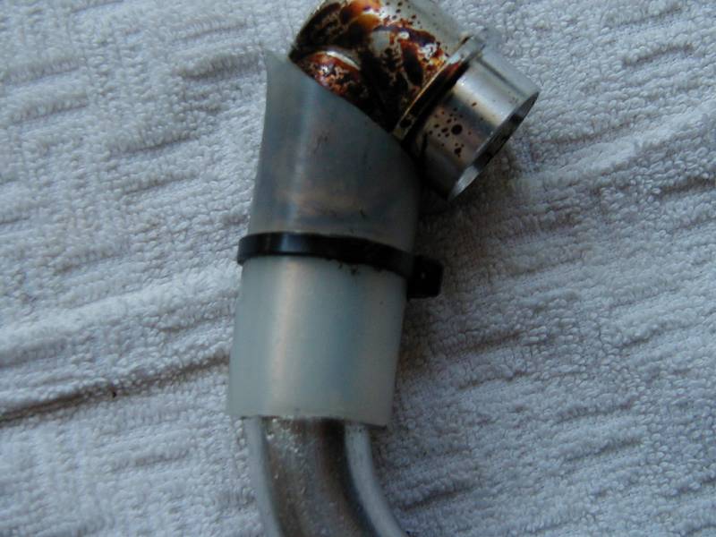 Ahh, so much burned fuel, there is even more on the under side then the top. Notice how the rubber manifold has a rip in it, That isnt right? Am I correct?