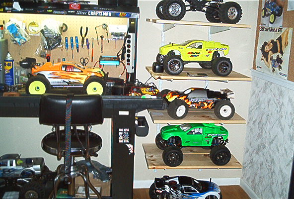 that is a nice collection you have there soilwork and the stirage shelves look nice too and no you can never have enough bench area to work on a truck.i actually added another 4 ft because 6 ft on both ends was'ent long enough[sm=biggrin.gif]