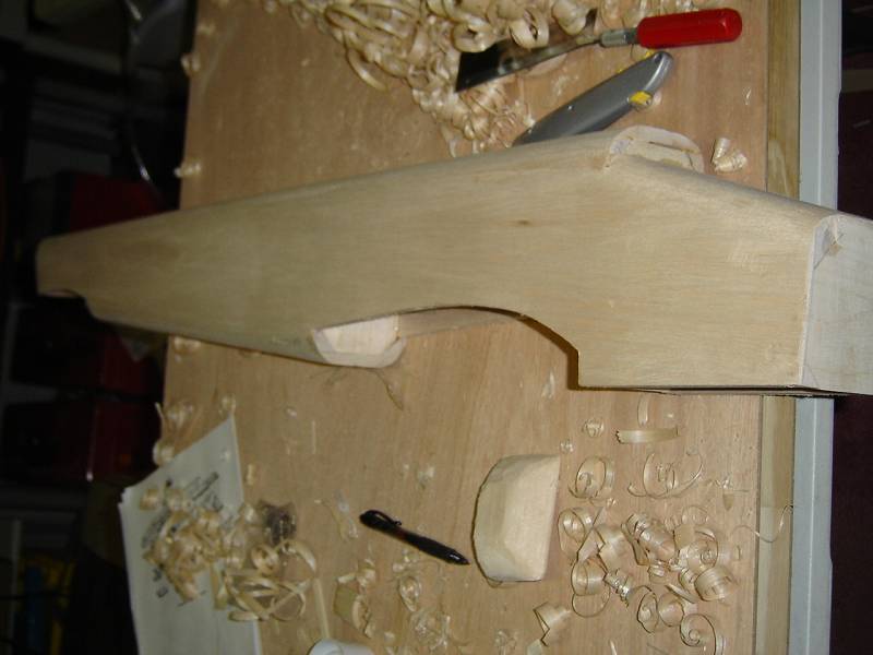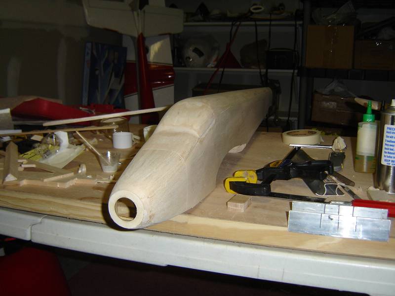 Well yesterday I finished the nose section and got the stabilizer almost finished. I'll do some final shaping after I cut the elevators. The engine is angled so the tuned pipe will run down the belly of the plane. The fin and dorsal are done but not mounted. Rudder still remains to be shaped. I won't be able to avoid the wings much longer!