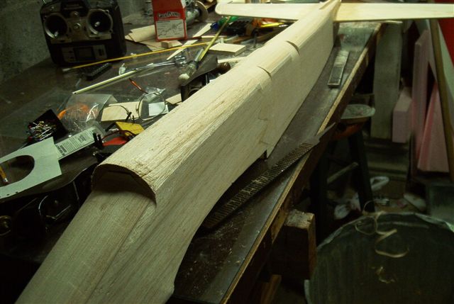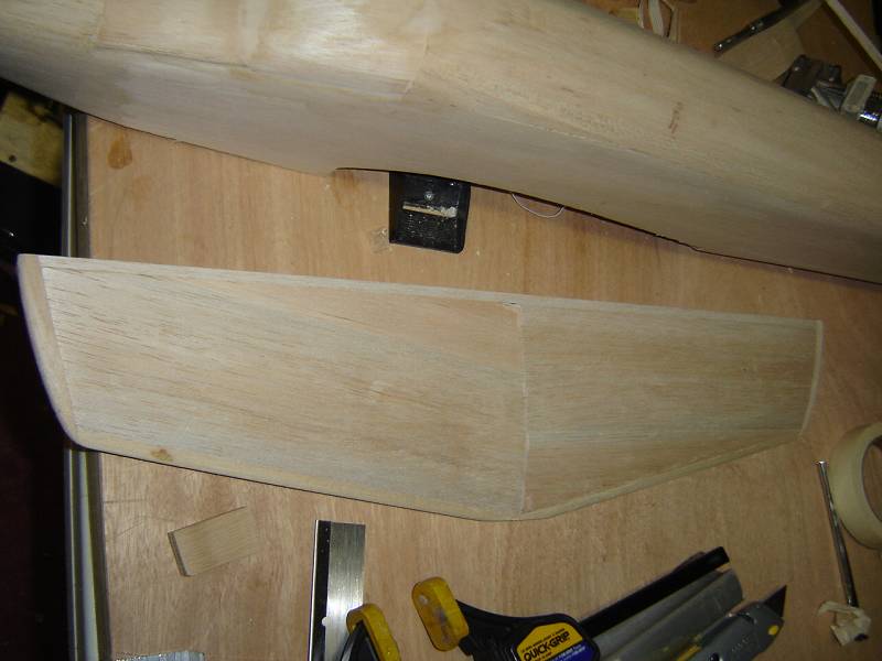 OK, tonight I made some pretty good progress. I figured out what I wanted to do with the canopy area and finished that (balsa filler is my friend). I also rounded the fuselage as "stripes" suggested (thanks). I trimmed up the stabs and they are gluing together as we speak. Should be able to cap them tomorrow. Lastly, I made my fin. I'm not sure I will have the dorsal run all the way to the canopy as the plans suggest as this plane is stretched and we are working with an unknown. Besides, more chance for me to screw up! hehe