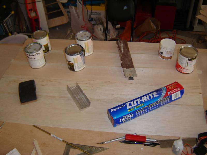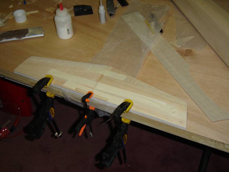 The picture shows the wing skins being assembled. After they are dry, I'll sand them and glue them to the foam cores..