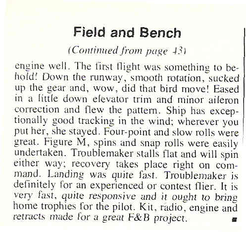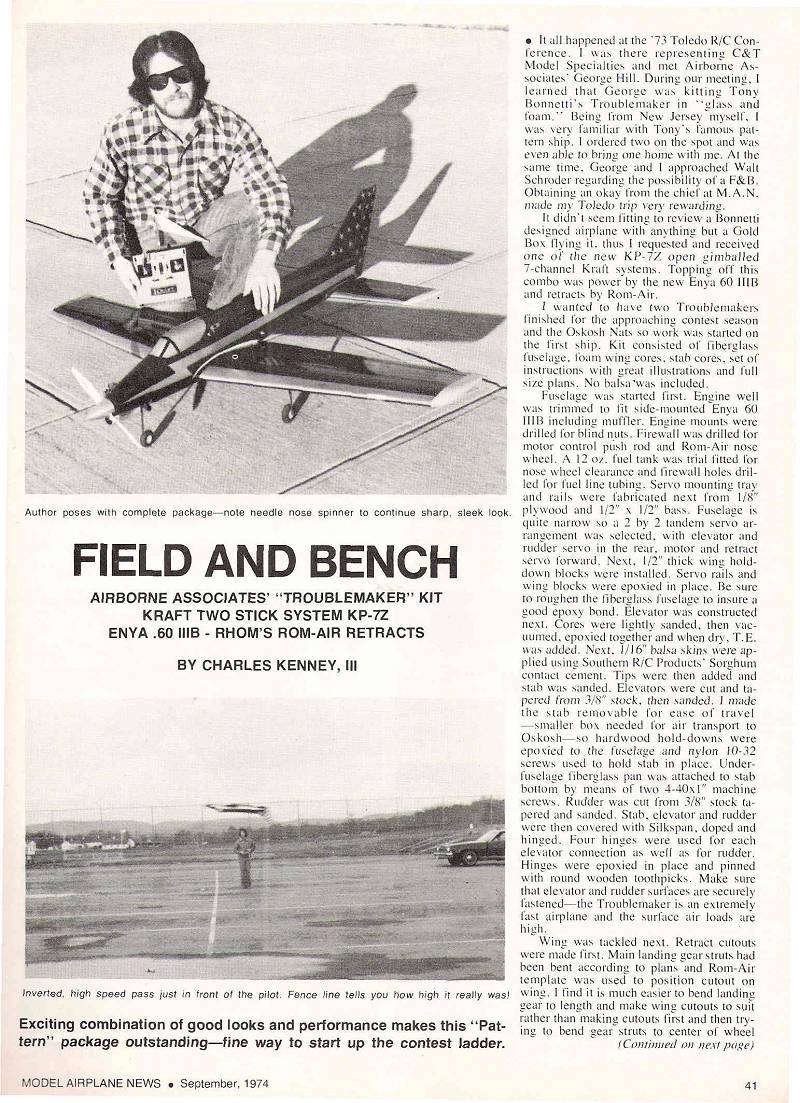 Here's a shot of the man himself, Tony Bonetti, with his Troublemaker development called Intrepid. Taken at the 1977 TOC where he placed tenth. Will see if I can find any Troublemaker pictures in my back issues.