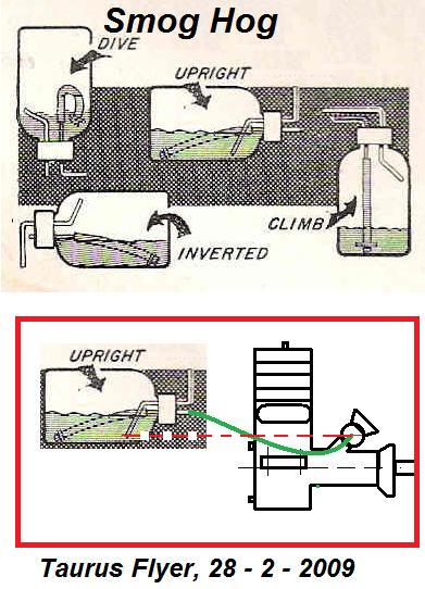 The air inlet tube on the same level as the spray bar gives you a constant fuel pressure in normal horizontal flight as long as the level is above the air inlet in the tank!